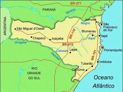 O mar, as serras que se enfeitam de neve no inverno, as estâncias termais e os vales de colonização européia oferecem uma enorme variedade de contrastes que fazem do Estado de Santa Catarina uma excelente destinação turística. Sua localização geografica é bastante privilegiada, sendo de fácil acesso não apenas para os demais estados brasileiros, mas também para países vizinhos - Paraguai, Argentina e Uruguai - sendo seus portos marítimos: São Francisco do Sul, Itajaí e Imbituba, escoadouros naturais de produção do Cone Sul. É um dos mais ricos e promissores estados brasileiros, expressivo exportador de pescados, grande fabricante de malhas, vinhos, cristais, produtos industriais de qualidade, artesanatos e produtos siderúrgicos.