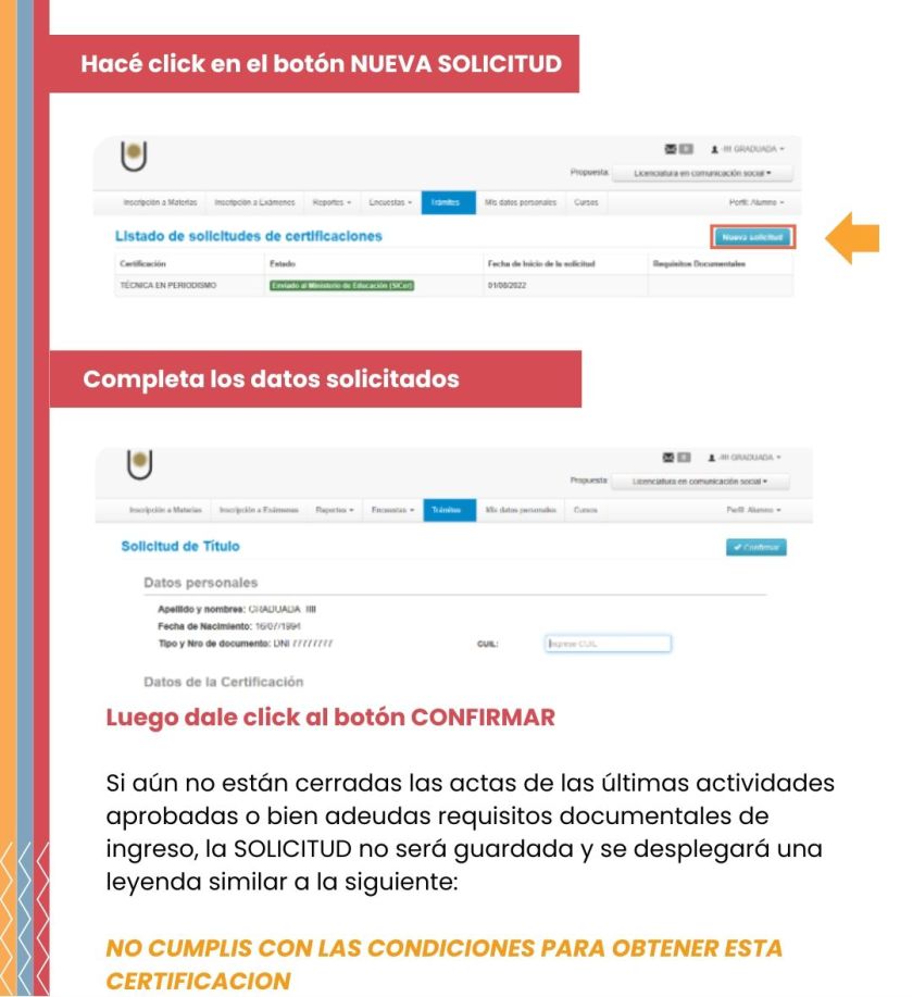 Para Carreras de Grado (4 o 5 años) o de Pregrado: