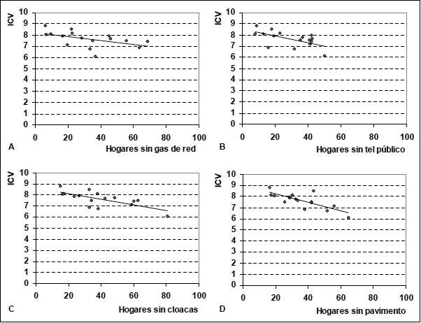 público cercano, C) porcentaje de hogares sin cloacas y D)