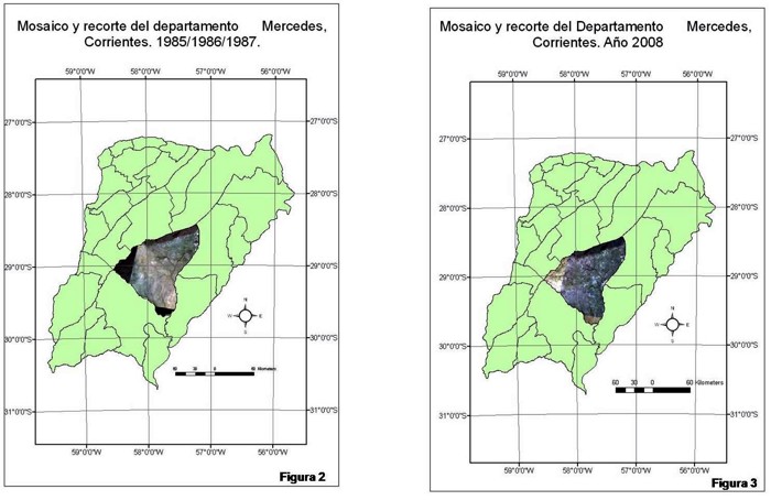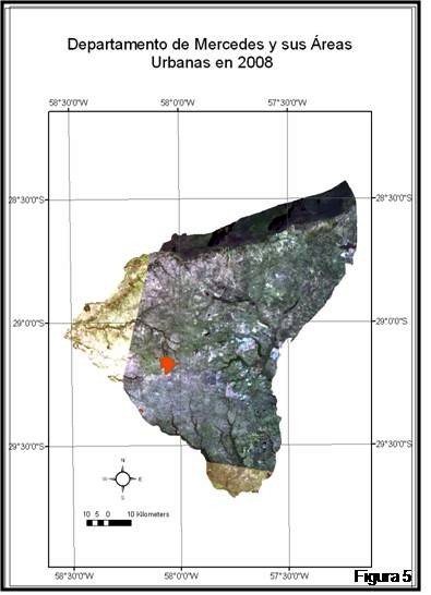 obtuvieron las imágenes 4 y 5, allí se aprecia el departamento de Mercedes en su totalidad y las áreas urbanas