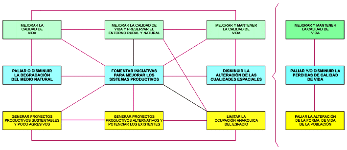 natural y social, entre otras. De cumplirse, se podría mejorar y mantener la calidad de vida de los pobladores; es decir, la concreción de viviendas y servicios adecuados, posibilidades laborales, presencia de espacios verdes, mantenimiento de ciertas pautas culturales, revalorización del habitante rural, etc. |