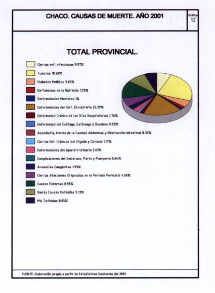 Las muertes provocadas por anomalías congénitas y del período perinatal afectan en su gran mayoría al grupo de 0 a 4 años. Las deficiencias de la nutrición provocan el 33% de las muertes en menores de 4 años y el 40% en mayores de 75 años, los dos grupos más vulnerables y con mayores necesidades alimentarias muchas veces difíciles de satisfacer. Las complicaciones del embarazo afectan en mayor medida al grupo mayor de 45 años (66%) y en segundo lugar al de 25-44 años con el 32%. Gráfico 12.