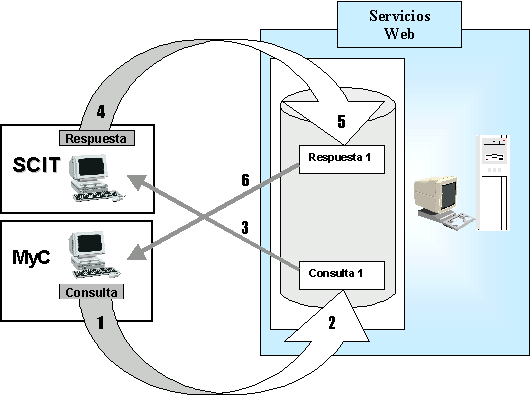 puedan ser consultados en cualquier momento. Los operadores de un Municipio o Comuna sólo podrán consultar sus mensajes, y no podrán acceder a los mensajes enviados por otros MyC. El siguiente gráfico muestra la secuencia de