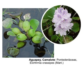 Los ambientes acuáticos lénticos se hallan caracterizados por los esteros, cañadas y lagunas. Mientras los esteros se mantienen cubiertos de aguas casi todo el año, el manto hídrico de las cañadas se forma durante las grandes lluvias, persistiendo entre 3 y 5 meses para luego desaparecer durante la época de sequías. Las lagunas y esteros conforman ambientes lénticos poblados por una densa fitocenosis, comunidad vegetal compuesta por una enorme variedad de especies acuáticas, entre las que se distinguen grupos flotantes como los camalotales (Eichornia), los densos mantos de repollitos, lentejas, acordeones y helechos de agua (Pistia stratotes; Lemma spp, Salvinia y Azolla respectivamente), otras son flotantes arraigadas o de las orillas como la saeta o sagitaria (Sagittaria montevidensis), la estrellita de agua (Nynphoides indica), el duraznillo de agua (Lwdigia spp.), el catay (Polygonum punctatum Elly ), etc., mereciendo especial mención los embalsados, compacto colchón flotante de materia vegetal, cuyos componentes principales son las gramíneas (Panicum, Paspalum); mientras entre los vegetales arraigados, frecuentes en las orillas de la laguna, sobresalen exuberantes pajonales (Panicum spp.), juncales (Scirpus), pirizales (Cyperus), totorales (Tipha spp.), peguajosales (Thalia spp.), etc. que constituyen las comunidades de plantas palustres dominantes. También dentro de este grupo es destacada la presencia de pasto bolita (distinto tipos de Cyperus), achiras (Cannáceas), margarita de agua o lengua de ciervo (Senecio bonaeriensis Hook. Et Arn.), rosa de río (Hibiscus cisplatinus St. Hil) y una orquídea palustre (Habenaria gourlieana Gilles ex Lindt.).