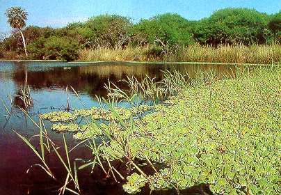 ![]() Típica fisonomía de cañada inundada estacionalmente con abundante vegetación herbácea higrófila ( Géneros Páspalum, Panicum, Cyperus, Scirpus)