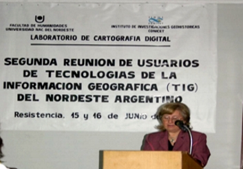 Entre los días 15 y 16 de Junio del corriente, se llevó a cabo en el salón de Actos de la Facultad de Humanidades de la Universidad Nacional del Nordeste, la Segunda Reunión de Usuarios de Tecnologías de la Información Geográfica del Nordeste Argentino. Este evento fue organizado por el Laboratorio de Cartografía Digital dependiente conjuntamente de la Facultad de Humanidades -Departamento de Geografía- de la Universidad Nacional del Nordeste y del Instituto de Investigaciones Neohistóricas IIGHI – CONICET. Al igual que la Primera, realizada en el año 2005, esta segunda reunión quiso convocar a todas aquellas instituciones y personas que se encuentran vinculadas al uso de las TIG, con el objeto de poner en consideración, comentar y debatir actividades, estudios, investigaciones y problemas comunes que hayan surgido como consecuencia del uso de estas herramientas. En este sentido, varios organismos e instituciones respondieron a la convocatoria a través de la presentación de trabajos, tanto en comunicaciones como bajo la modalidad de postres. En estas jornadas se contó con la participación especial del Instituto Geográfico Militar –IGM- y la Comisión Nacional de Actividades Espaciales –CONAE, a cuyo cargo quedaron las conferencias desarrolladas con las siguientes temáticas: