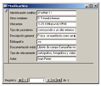 Escenario 3: un usuario desea realizar modificaciones a un sitio. 3.1. Ídem 2.1 3.2. Se le pedirá la “Identificación Codificada” (Ej. SForMat 1-1) del sitio a modificar y se validará que el usuario sea Autor de dicho sitio. 3.3. Se desplegarán los datos del sitio solicitado para que el Autor realice las modificaciones.
